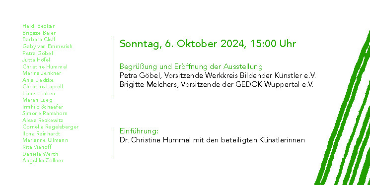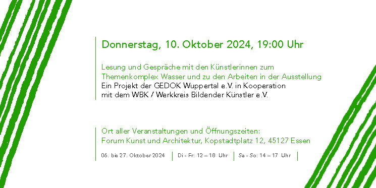 am 6. Oktober 2024 um 15:00 Uhr findet die Ausstellungseröffnung im Forum Kunst und Architektur, Essen, Kopstadtplatz 12 statt. Freunde, Bekannte und Interessierte sind herzlich dazu eingeladen.