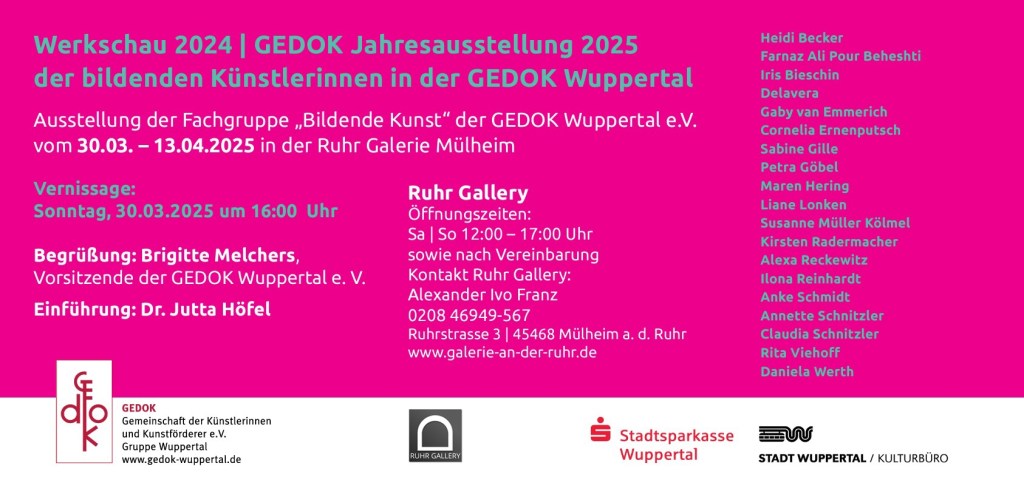 19 Künstlerinnen der GEDOK Wuppertal zeigen aktuelle Positionen.